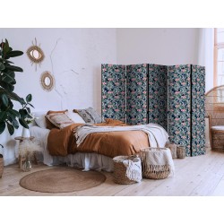 Raumteiler Paravent Unsere Raumteiler Paravents haben viele Vorteile. Zunächst einmal gibt es sie in verschiedenen Varianten, d.h. sie können aus drei oder fünf Teilen bestehen. Dank der Metallscharniere lässt sich diese Dekoration leicht zusammenfalten. Die Raumteiler stehen auf einem Sockel, der auch vor Beschädigungen schützt. Dieses dekorative Element besteht aus einer soliden Holzkonstruktion. Das Satinband sorgt für einen eleganten Abschluss und verstärkt die Seiten. Unsere Raumteiler sind aus Vliesstoff gefertigt, haben also eine feine Struktur und sind frei von sichtbaren Heftklammern. Es wurde auf jedes noch so kleine Detail geachtet, so dass diese Dekoration auch durch ihre Eleganz besticht. Wir haben hier also Funktionalität, Ästhetik und Eleganz – was will man mehr von einer Dekoration?Technische Details