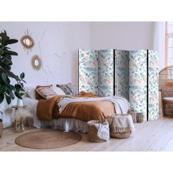 Raumteiler Paravent Unsere Raumteiler Paravents haben viele Vorteile. Zunächst einmal gibt es sie in verschiedenen Varianten, d.h. sie können aus drei oder fünf Teilen bestehen. Dank der Metallscharniere lässt sich diese Dekoration leicht zusammenfalten. Die Raumteiler stehen auf einem Sockel, der auch vor Beschädigungen schützt. Dieses dekorative Element besteht aus einer soliden Holzkonstruktion. Das Satinband sorgt für einen eleganten Abschluss und verstärkt die Seiten. Unsere Raumteiler sind aus Vliesstoff gefertigt, haben also eine feine Struktur und sind frei von sichtbaren Heftklammern. Es wurde auf jedes noch so kleine Detail geachtet, so dass diese Dekoration auch durch ihre Eleganz besticht. Wir haben hier also Funktionalität, Ästhetik und Eleganz – was will man mehr von einer Dekoration?Technische Details