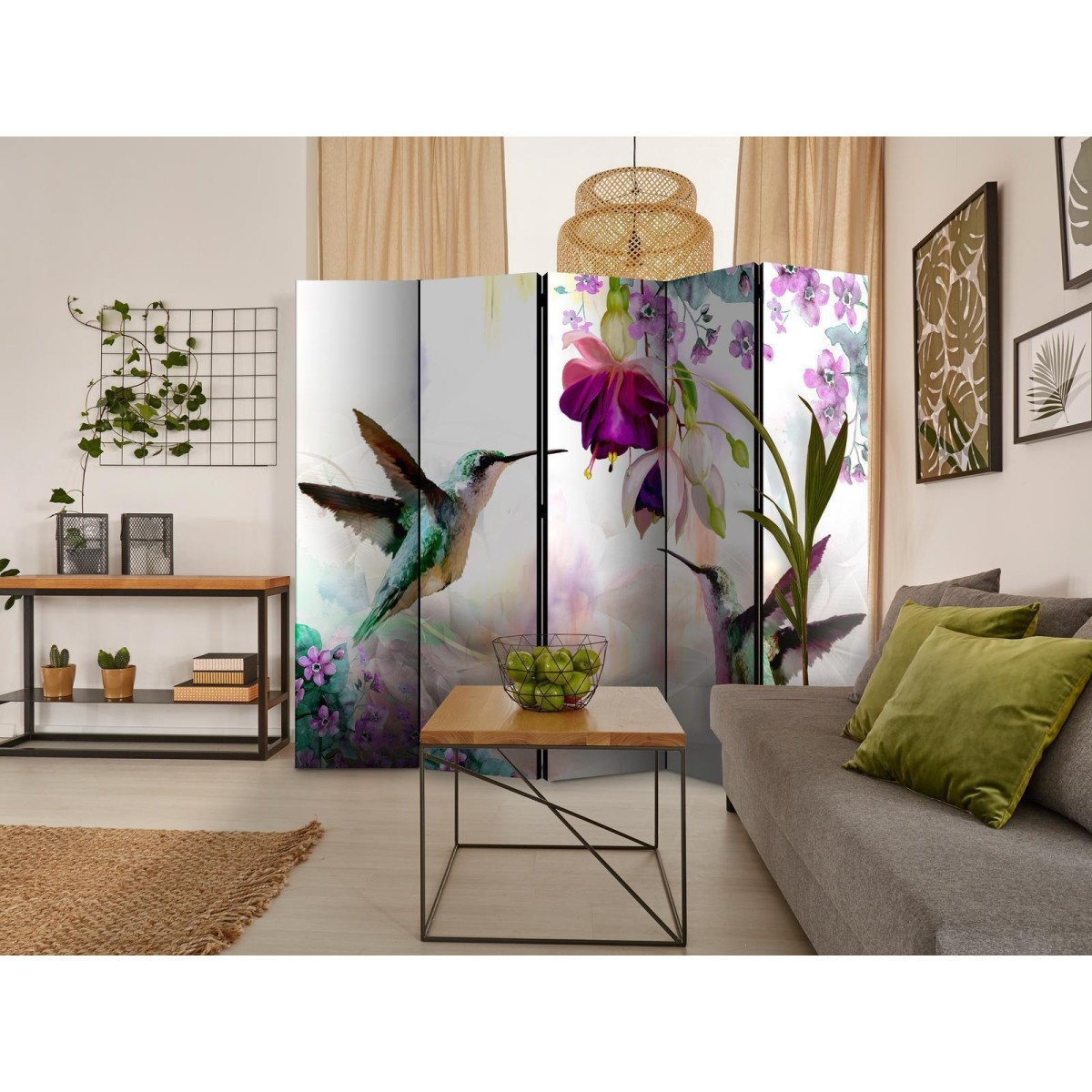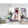 Paravent "Paravent - Hummingbirds and Flowers II" Paravents sind hervorragende Dekorationselemente, die auf vielfältige Weise eingesetzt werden können. Sie verbinden perfekt Funktionalität und originelle Ästhetik. Aus diesem Grund sind sie sehr beliebt. Der Hauptvorteil ist, dass diese Dekoration einen Raum unterteilen kann, ohne dass Renovierungsarbeiten erforderlich sind. Im Folgenden finden Sie die Vorteile dieses Gestaltungselements – lassen Sie sich davon für Ihre Einrichtung inspirieren. Sie können die Paravents aus unserem Sortiment in drei Varianten kaufen, und jede von ihnen erfüllt eine interessante Funktion: Paravent – einseitig bedruckt, Paravent – doppelseitig bedruckt, Akustischer Paravent. Dies ist ein klarer Beweis dafür, dass die Trennwände auch sehr nützlich sind. Viele Menschen verwenden sie zum Beispiel, um einen Raum optisch zu unterteilen oder einen Teil davon zu verbergen. Der Raumtrenner ist auch häufig in Wirtschaftsräumen zu finden, zum Beispiel in einem Friseursalon, einem Boutique oder einer Arztpraxis. Jeder schätzt die Ästhetik und den praktischen Nutzen dieser Dekoration. Mit Raumteiler Paravent "Paravent - Hummingbirds and Flowers II" können Sie Räume in Zonen aufteilen – das Schlafzimmer in Schlaf- und Garderobenbereiche, das Wohnzimmer in Sitz- und Essbereiche. Gestalten Sie Ihre Home-Office-Ecke und grenzen Sie den Bürobereich im Wohnzimmer mit einem stilvollen Raumteiler ab. Wie Sie es verwenden, hängt von Ihrer Phantasie, Ihren Bedürfnissen und Vorlieben ab.