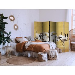 Spanische Wand Die spanische Wand kann sowohl im Wohnzimmer, Schlafzimmer, Kinderzimmer, Badezimmer als auch in der Küche aufgestellt werden. Viele Büro-, Restaurant- und Clubbesitzer entscheiden sich häufig für diese dekorative Lösung in ihren Räumlichkeiten. Die spanische Wand "Paravent - Japanese cranes - a flock of birds against a golden background based on a painting by Ishida Yūtei" ist aus geruchsneutralen Materialien hergestellt, die sicher sind und daher keine Allergien auslösen. Es ist eine vielseitige Dekorationsmöglichkeit, die viele Vorteile hat. Der Hauptvorteil ist, dass diese Dekoration leicht zu bewegen ist, so dass sie schnell und einfach neu positioniert werden kann. Wichtig ist, dass die inneren Trennwände einen UV-Schutz haben, so dass die Farben auch im Laufe der Jahre intensiv bleiben. Der Raumteiler hat Designs, die die Einrichtung jedes Raumes ergänzen können.