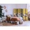 Raumteiler Paravent Unsere Raumteiler Paravents haben viele Vorteile. Zunächst einmal gibt es sie in verschiedenen Varianten, d.h. sie können aus drei oder fünf Teilen bestehen. Dank der Metallscharniere lässt sich diese Dekoration leicht zusammenfalten. Die Raumteiler stehen auf einem Sockel, der auch vor Beschädigungen schützt. Dieses dekorative Element besteht aus einer soliden Holzkonstruktion. Das Satinband sorgt für einen eleganten Abschluss und verstärkt die Seiten. Unsere Raumteiler sind aus Vliesstoff gefertigt, haben also eine feine Struktur und sind frei von sichtbaren Heftklammern. Es wurde auf jedes noch so kleine Detail geachtet, so dass diese Dekoration auch durch ihre Eleganz besticht. Wir haben hier also Funktionalität, Ästhetik und Eleganz – was will man mehr von einer Dekoration?Technische Details