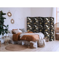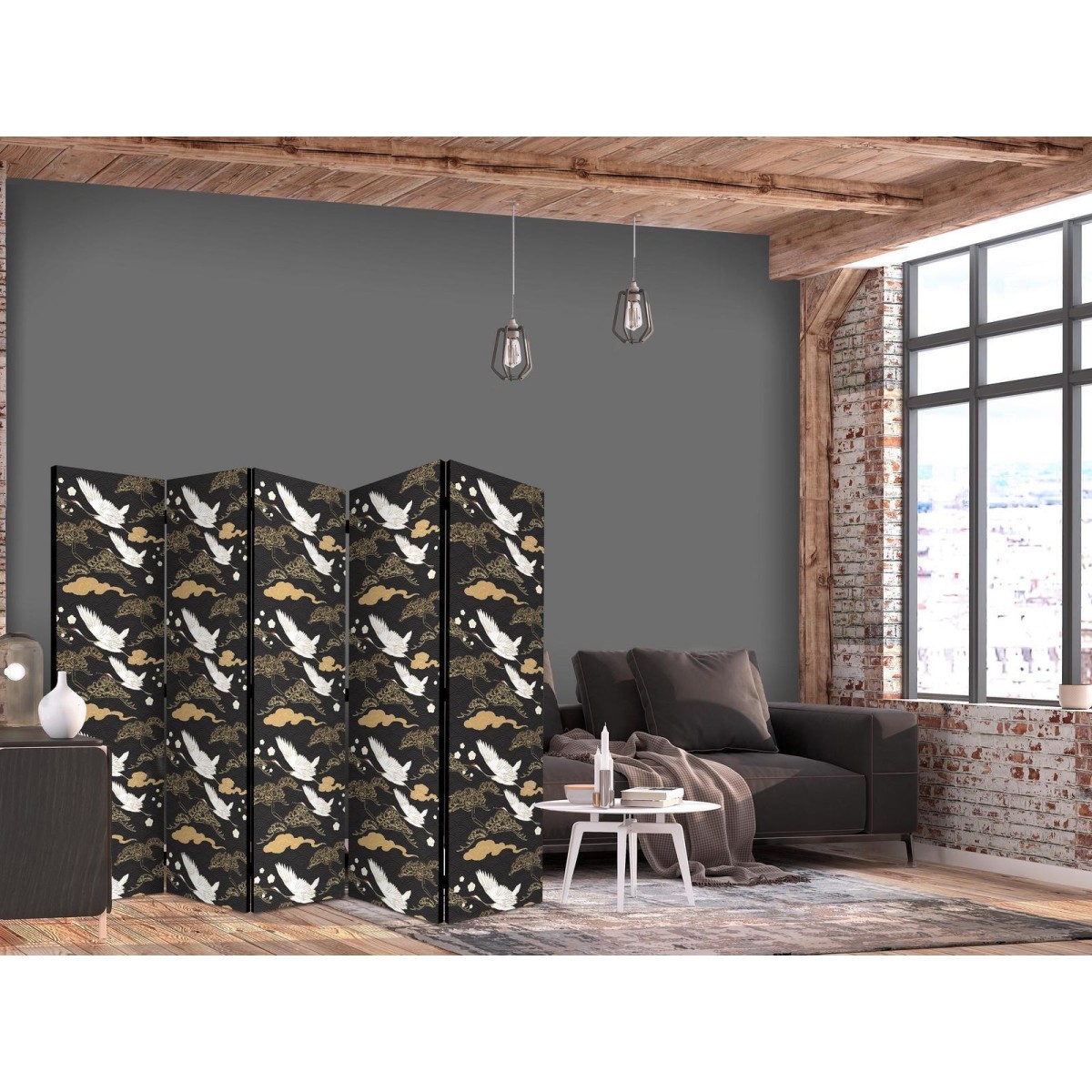 Spanische Wand Die spanische Wand kann sowohl im Wohnzimmer, Schlafzimmer, Kinderzimmer, Badezimmer als auch in der Küche aufgestellt werden. Viele Büro-, Restaurant- und Clubbesitzer entscheiden sich häufig für diese dekorative Lösung in ihren Räumlichkeiten. Die spanische Wand "Paravent - Oriental impressions - decorative pattern with a motif of flying cranes on a dark background" ist aus geruchsneutralen Materialien hergestellt, die sicher sind und daher keine Allergien auslösen. Es ist eine vielseitige Dekorationsmöglichkeit, die viele Vorteile hat. Der Hauptvorteil ist, dass diese Dekoration leicht zu bewegen ist, so dass sie schnell und einfach neu positioniert werden kann. Wichtig ist, dass die inneren Trennwände einen UV-Schutz haben, so dass die Farben auch im Laufe der Jahre intensiv bleiben. Der Raumteiler hat Designs, die die Einrichtung jedes Raumes ergänzen können.