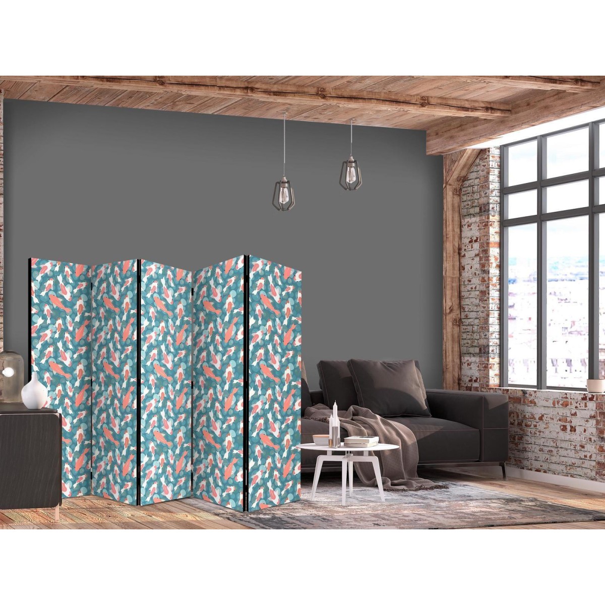 Paravent "Paravent - Oriental Pond - A Cluster of Japanese Fish Swimming in Crystal Clear Water with Glimmers of Light" Paravents sind hervorragende Dekorationselemente, die auf vielfältige Weise eingesetzt werden können. Sie verbinden perfekt Funktionalität und originelle Ästhetik. Aus diesem Grund sind sie sehr beliebt. Der Hauptvorteil ist, dass diese Dekoration einen Raum unterteilen kann, ohne dass Renovierungsarbeiten erforderlich sind. Im Folgenden finden Sie die Vorteile dieses Gestaltungselements – lassen Sie sich davon für Ihre Einrichtung inspirieren. Sie können die Paravents aus unserem Sortiment in drei Varianten kaufen, und jede von ihnen erfüllt eine interessante Funktion: Paravent – einseitig bedruckt, Paravent – doppelseitig bedruckt, Akustischer Paravent. Dies ist ein klarer Beweis dafür, dass die Trennwände auch sehr nützlich sind. Viele Menschen verwenden sie zum Beispiel, um einen Raum optisch zu unterteilen oder einen Teil davon zu verbergen. Der Raumtrenner ist auch häufig in Wirtschaftsräumen zu finden, zum Beispiel in einem Friseursalon, einem Boutique oder einer Arztpraxis. Jeder schätzt die Ästhetik und den praktischen Nutzen dieser Dekoration. Mit Raumteiler Paravent "Paravent - Oriental Pond - A Cluster of Japanese Fish Swimming in Crystal Clear Water with Glimmers of Light" können Sie Räume in Zonen aufteilen – das Schlafzimmer in Schlaf- und Garderobenbereiche, das Wohnzimmer in Sitz- und Essbereiche. Gestalten Sie Ihre Home-Office-Ecke und grenzen Sie den Bürobereich im Wohnzimmer mit einem stilvollen Raumteiler ab. Wie Sie es verwenden, hängt von Ihrer Phantasie, Ihren Bedürfnissen und Vorlieben ab.