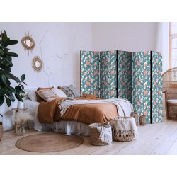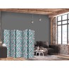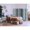 Raumteiler Paravent Unsere Raumteiler Paravents haben viele Vorteile. Zunächst einmal gibt es sie in verschiedenen Varianten, d.h. sie können aus drei oder fünf Teilen bestehen. Dank der Metallscharniere lässt sich diese Dekoration leicht zusammenfalten. Die Raumteiler stehen auf einem Sockel, der auch vor Beschädigungen schützt. Dieses dekorative Element besteht aus einer soliden Holzkonstruktion. Das Satinband sorgt für einen eleganten Abschluss und verstärkt die Seiten. Unsere Raumteiler sind aus Vliesstoff gefertigt, haben also eine feine Struktur und sind frei von sichtbaren Heftklammern. Es wurde auf jedes noch so kleine Detail geachtet, so dass diese Dekoration auch durch ihre Eleganz besticht. Wir haben hier also Funktionalität, Ästhetik und Eleganz – was will man mehr von einer Dekoration?Technische Details