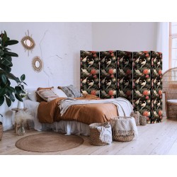 Paravent "Paravent - Ornament with birds - silhouettes of cranes and peony flowers on a dark background"Paravents sind hervorragende Dekorationselemente, die auf vielfältige Weise eingesetzt werden können. Sie verbinden perfekt...