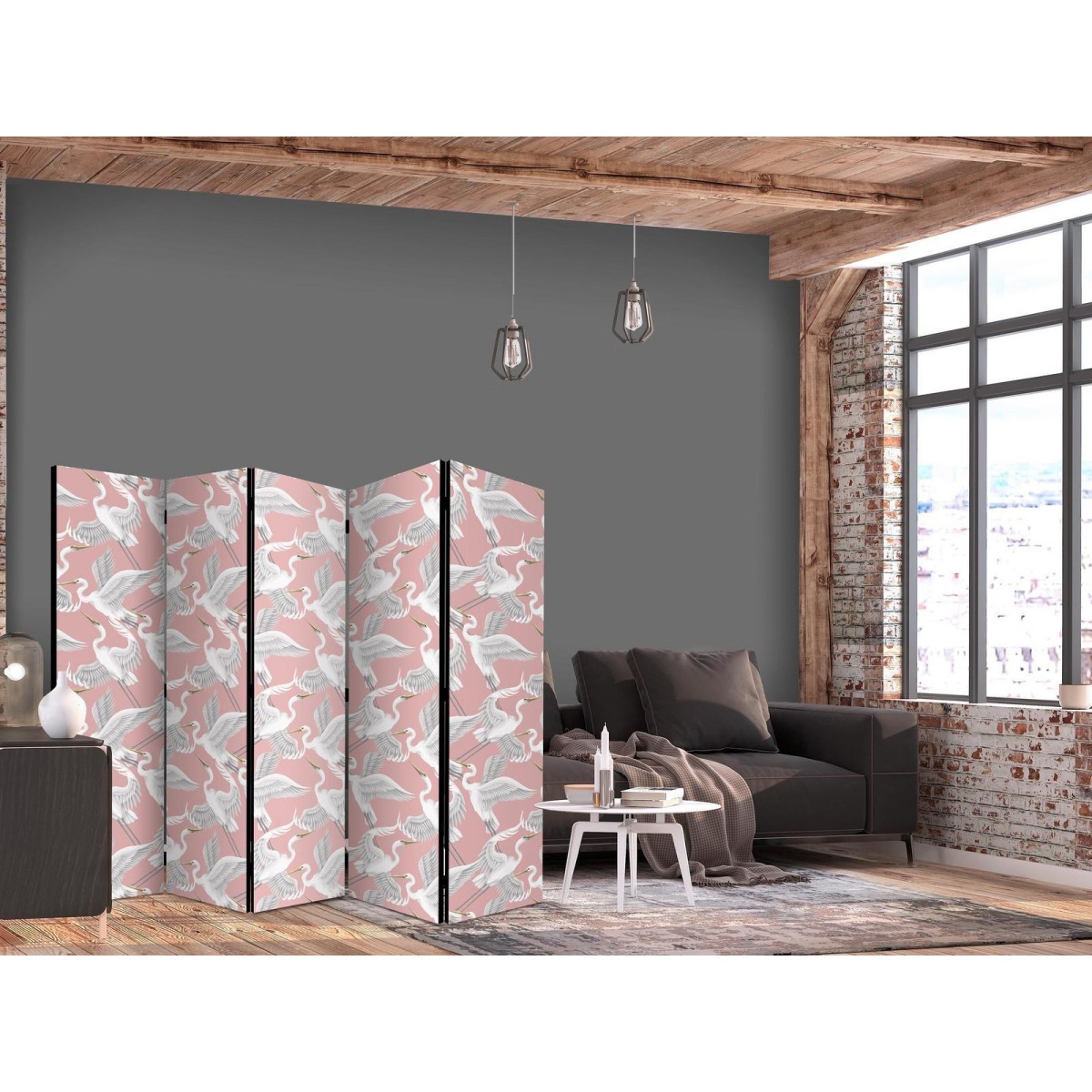 Paravent - Pastel birds - a delicate pattern of white and grey herons on a light pink background