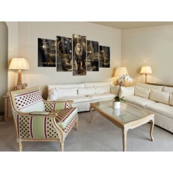 Acrylglasbild "Acrylglasbild - Golden Lion" ist eine exzellente Idee für die Ausstattung von modernen Innenräumen. Passt perfekt zu den originellen Lösungen und ist eine interessante Alternative für traditionelle Wanddekorationen z.B. als Glaspaneele oder dekoratives Glas für die Küche. Druck auf Acrylglas zieht den Blick auf sich, dank efektvoller Tiefe und sieht wunderschön im Repräsentationszimmer aus. Dank der Anwendung moderner Technologien des Drucks und der Farbstoffe von hoher Qualität, charakterisiert es sich mit wunderschönem Glanz. Acrylglasbilder sind leicht, abwaschbar und unempfindlich gegen Feuchtigkeitseinwirkung, dank dem bewähren sie sich exzellent sowohl im Salon, Schlafzimmer, Bad, und sogar auf der Terasse. Acrylglas mit Grafik gewinnt dank der Lichtdurchlässigkeit einen unglaublichen 3D Effekt.