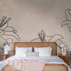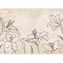 Fototapete "Fototapete - Sketch of nature - minimalist lineart with lily flowers on a beige background" wird Ihr Interieur völlig verändern. Hier finden Sie, was Sie brauchen.