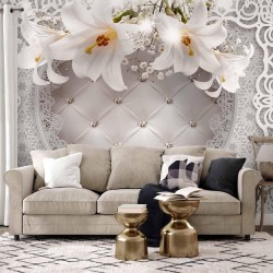 Fototapete "Fototapete - Lilies and Quilted Background" wird Ihr Interieur völlig verändern. Hier finden Sie, was Sie brauchen.