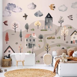 Fototapete Fototapeten sind in den letzten Jahren eine häufige Wahl für Wanddekoration geworden. Sie sind eine großartige Wanddeko, die sich für verschiedene Räume eignet. Fototapeten sind eine hervorragende Alternative für das Wohnzimmer, für das Schlafzimmer und auch für das Kinderzimmer. Diese einzigartigen Dekorationen passen in praktisch jeden Raum. Wenn Sie sich immer noch fragen, ob dies die richtige Wahl ist, sind Sie hier genau richtig. Fototapete "Fototapete - Scandinavian Valley - Village in Pastel Colours Painted in Watercolours" wird Ihr Interieur völlig verändern. Hier finden Sie, was Sie brauchen.