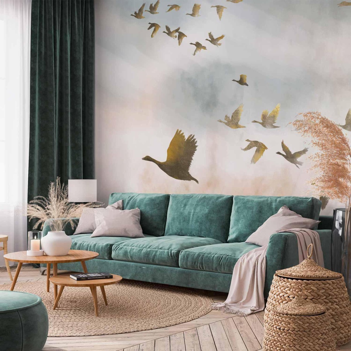 Fototapete Fototapeten sind in den letzten Jahren eine häufige Wahl für Wanddekoration geworden. Sie sind eine großartige Wanddeko, die sich für verschiedene Räume eignet. Fototapeten sind eine hervorragende Alternative für das Wohnzimmer, für das Schlafzimmer und auch für das Kinderzimmer. Diese einzigartigen Dekorationen passen in praktisch jeden Raum. Wenn Sie sich immer noch fragen, ob dies die richtige Wahl ist, sind Sie hier genau richtig. Fototapete "Fototapete - Golden Geese" wird Ihr Interieur völlig verändern. Hier finden Sie, was Sie brauchen.