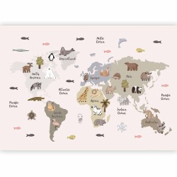 Fototapete Schlafzimmer Fototapete "Fototapete - Pastel Map - Animals and Continents for Children's Room" ist ein hochwertiger Digitaldruck, der ein qualitativ hochwertiges Produkt und eine einfache Montage garantiert. Fototapete Schlafzimmer ist eine Revolution in der Wandgestaltung. Wählen Sie das passende Universalmotiv für Ihr Schlafzimmer und genießen Sie jede Nacht einen einzigartigen Ausblick. Sie können die Größe der Dekoration an Ihre räumlichen Gegebenheiten anpassen. Außerdem können Sie das Material und die zusätzlichen Effekte wählen, die auf der Fototapete Schlafzimmer zu sehen sind. Ähnliche Motive, die Sie im Schlafzimmer verwenden, können auch in der Küche eingesetzt werden. Die Fototapete Küche eignet sich auch gut für das Schlafzimmer und das Wohnzimmer. Sie können Ihre Wanddekoration nach Belieben konfigurieren und sie so anpassen, dass sie perfekt in jeden Raum passt.