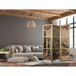 Japanischer Paravent "Japanischer Paravent - Landscape with Cypresses - Old Tapestry with Mediterranean Vegetation" Liegen Ihnen der japanische Stil und die japanische Kultur am Herzen? Aber nicht nahe genug, um dort zu leben oder diesen Teil der Welt zu besuchen? Sind Sie auf der Suche nach einer modernen Dekoration für Ihr Zuhause? Sehen Sie sich die japanischen Paravents an. Dieses vergessene dekorative Element ist sowohl zu Hause als auch im Büro sehr nützlich. Für wenig Geld können Sie Ihre Wohnung fast wie neu einrichten. Japanische Paravents fügen sich perfekt in jeden Einrichtungsstil ein. Ein Paravent "Japanischer Paravent - Landscape with Cypresses - Old Tapestry with Mediterranean Vegetation" ist nicht nur eine tolle Dekorationsidee, sondern auch eine praktische Möglichkeit, für Privatsphäre zu sorgen. Müssen Sie aus Ihrem Wohnzimmer zwei Räume machen? Ein japanischer Paravent ist in einem solchen Fall die ideale Lösung. Darüber hinaus unterstreicht das einseitig aufgedruckte Motiv mit Bezug zu Japan Ihr Interesse an der orientalischen Kultur. Wenn Sie in einer Einzimmerwohnung leben, ist japanischer Paravent eine gute Lösung, um die verschiedenen Bereiche voneinander zu trennen. Auf diese Weise schaffen Sie definierte Bereiche für das Esszimmer oder das Wohnzimmer oder sogar trennen Ihre Home-Office-Ecke ab und nutzen ein schönes Objekt, das viel Charme in Ihr Interieur bringt.