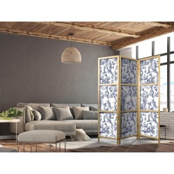 Asiatische Paravents Die asiatischen Paravents aus unserer Kollektion werden auf hochwertiges Vlies gedruckt. Dank des Materials hat sich der sichere Paravent auch im Zimmer eines jungen Orient-Liebhaber bewährt. Asiatische Paravents sind perfekt für ein Restaurant in diesem Stil. Sie können die Bereiche zwischen den Tischen abgrenzen, so dass sich die Gäste wohlfühlen. Japanisches Paravent "Japanischer Paravent - Rome and Botany - Blue Pattern with Greek and Plant Motif" ist auch eine gute Option für Schönheitssalons. Wenn Sie keine Wände bauen wollen, deren Layout Sie nach einer gewissen Zeit langweilen könnte, ist ein japanischer Paravent ideal für Sie! Es trennt die Kundenbereiche und verleiht ihnen Intimität.