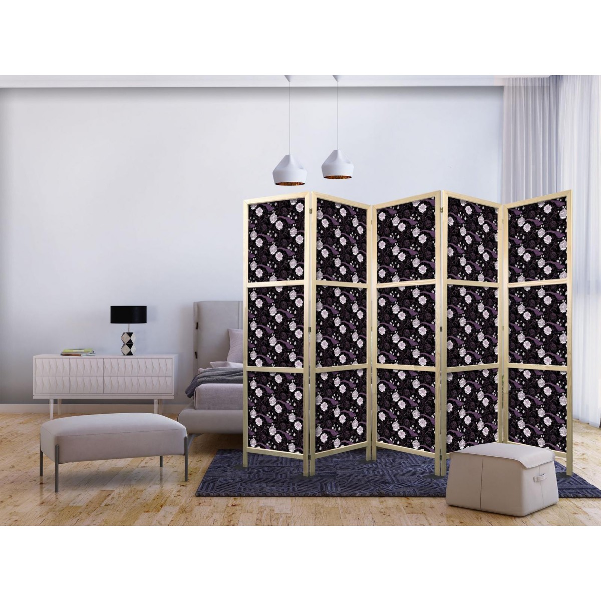 Japanische Paravents Ein Büro oder Arbeitsplatz kann sehr gemütlich sein, obwohl er voller Menschen ist. Die Verwendung eines dekorativen Paravents vermittelt ein Gefühl von Intimität und schafft eine Zone der Ruhe. Privatsphäre ist auch am Arbeitsplatz wichtig, da manche Aufgaben viel Konzentration erfordern. Zu diesem Zweck ist es ratsam, ein japanisches Paravent zu verwenden. Damit heben Sie Ihren Schreibtisch von anderen ab. Mit ihrem orientalischen, originellen Design ersetzen die 3- oder 5-teiligen Paravents japanisch viele Standard-Wanddekorationen oder monochrome Trennwände. Wählen Sie einen Paravent japanisch, der einen massiven Holzrahmen hat. Dadurch wird der orientalische Stil stärker betont. Ein solcher Paravent passt gut zu modernen und Boho-Einrichtungen.