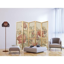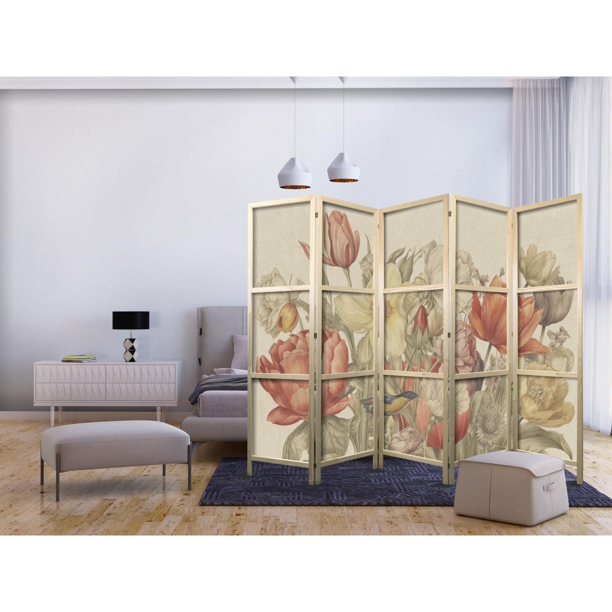 Japanischer Paravent "Japanischer Paravent - Bouquet with Tulips - Colorful Flowers on a Light Background - Illustration" Liegen Ihnen der japanische Stil und die japanische Kultur am Herzen? Aber nicht nahe genug, um dort zu leben oder diesen Teil der Welt zu besuchen? Sind Sie auf der Suche nach einer modernen Dekoration für Ihr Zuhause? Sehen Sie sich die japanischen Paravents an. Dieses vergessene dekorative Element ist sowohl zu Hause als auch im Büro sehr nützlich. Für wenig Geld können Sie Ihre Wohnung fast wie neu einrichten. Japanische Paravents fügen sich perfekt in jeden Einrichtungsstil ein. Ein Paravent "Japanischer Paravent - Bouquet with Tulips - Colorful Flowers on a Light Background - Illustration" ist nicht nur eine tolle Dekorationsidee, sondern auch eine praktische Möglichkeit, für Privatsphäre zu sorgen. Müssen Sie aus Ihrem Wohnzimmer zwei Räume machen? Ein japanischer Paravent ist in einem solchen Fall die ideale Lösung. Darüber hinaus unterstreicht das einseitig aufgedruckte Motiv mit Bezug zu Japan Ihr Interesse an der orientalischen Kultur. Wenn Sie in einer Einzimmerwohnung leben, ist japanischer Paravent eine gute Lösung, um die verschiedenen Bereiche voneinander zu trennen. Auf diese Weise schaffen Sie definierte Bereiche für das Esszimmer oder das Wohnzimmer oder sogar trennen Ihre Home-Office-Ecke ab und nutzen ein schönes Objekt, das viel Charme in Ihr Interieur bringt.