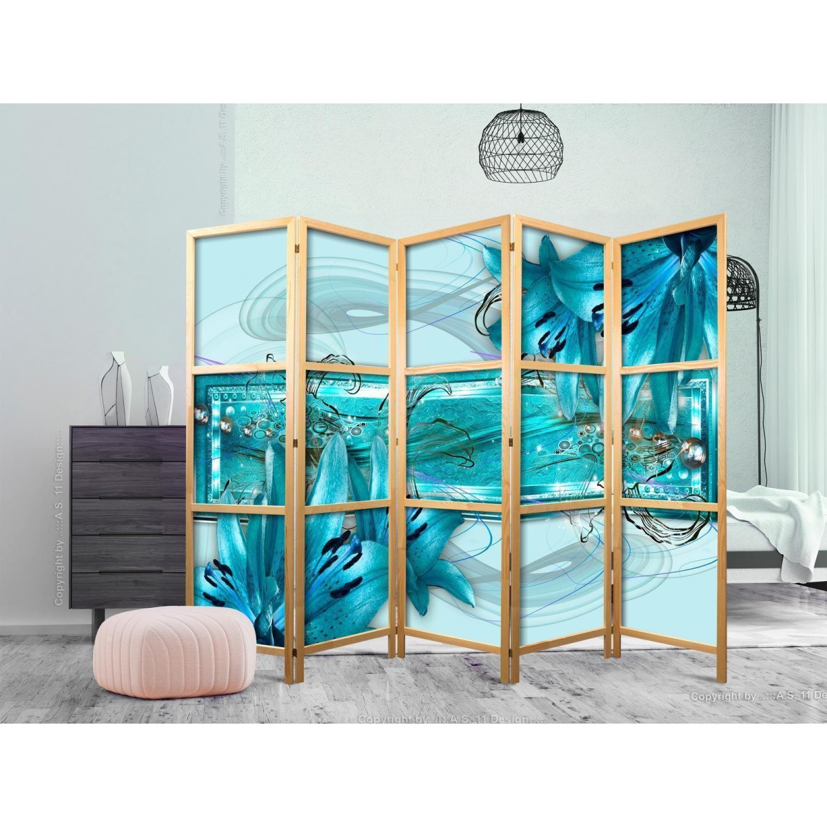 Japanischer Paravent "Japanischer Paravent - Lilies in Pale Blue II" Liegen Ihnen der japanische Stil und die japanische Kultur am Herzen? Aber nicht nahe genug, um dort zu leben oder diesen Teil der Welt zu besuchen? Sind Sie auf der Suche nach einer modernen Dekoration für Ihr Zuhause? Sehen Sie sich die japanischen Paravents an. Dieses vergessene dekorative Element ist sowohl zu Hause als auch im Büro sehr nützlich. Für wenig Geld können Sie Ihre Wohnung fast wie neu einrichten. Japanische Paravents fügen sich perfekt in jeden Einrichtungsstil ein. Ein Paravent "Japanischer Paravent - Lilies in Pale Blue II" ist nicht nur eine tolle Dekorationsidee, sondern auch eine praktische Möglichkeit, für Privatsphäre zu sorgen. Müssen Sie aus Ihrem Wohnzimmer zwei Räume machen? Ein japanischer Paravent ist in einem solchen Fall die ideale Lösung. Darüber hinaus unterstreicht das einseitig aufgedruckte Motiv mit Bezug zu Japan Ihr Interesse an der orientalischen Kultur. Wenn Sie in einer Einzimmerwohnung leben, ist japanischer Paravent eine gute Lösung, um die verschiedenen Bereiche voneinander zu trennen. Auf diese Weise schaffen Sie definierte Bereiche für das Esszimmer oder das Wohnzimmer oder sogar trennen Ihre Home-Office-Ecke ab und nutzen ein schönes Objekt, das viel Charme in Ihr Interieur bringt.