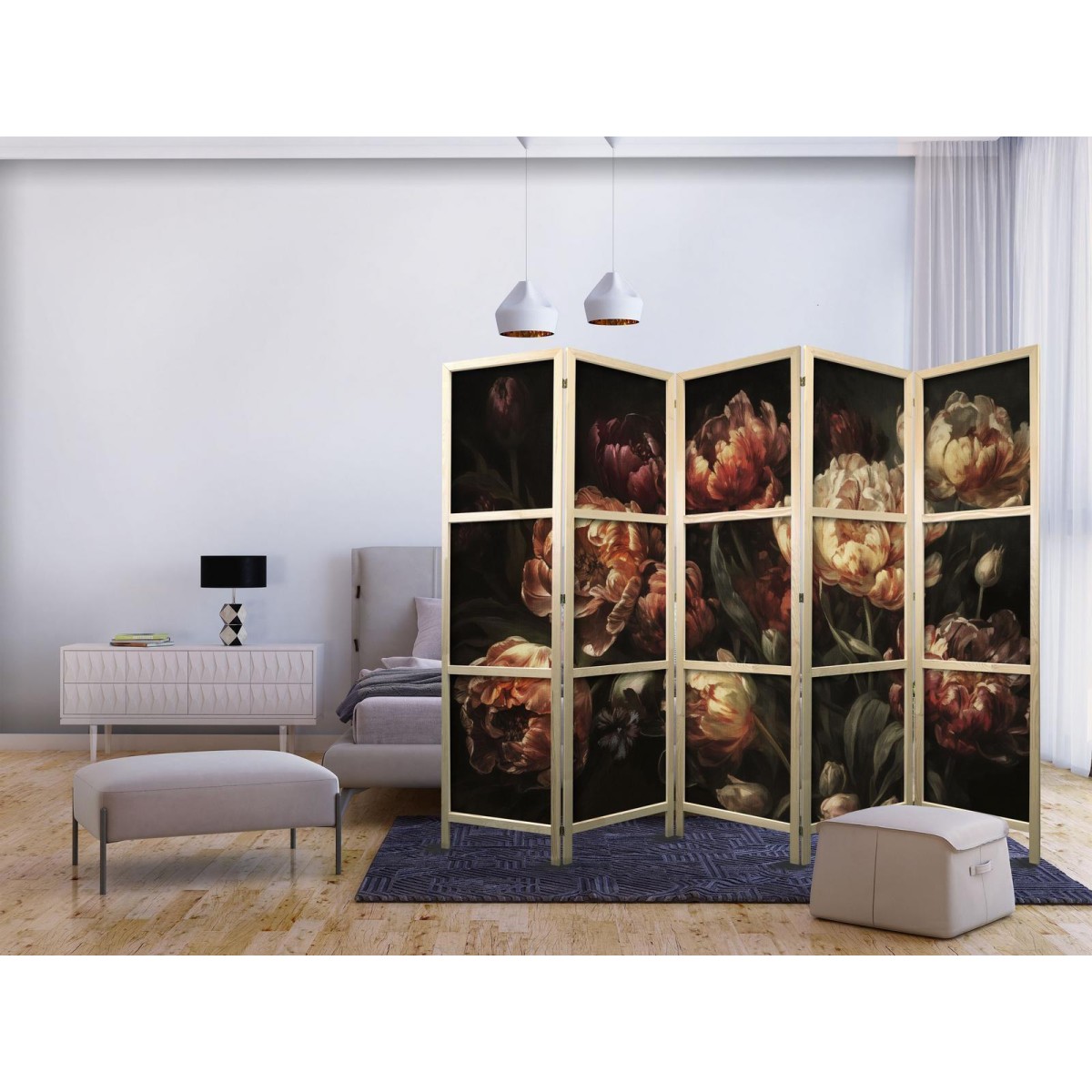 Asiatische Paravents Die asiatischen Paravents aus unserer Kollektion werden auf hochwertiges Vlies gedruckt. Dank des Materials hat sich der sichere Paravent auch im Zimmer eines jungen Orient-Liebhaber bewährt. Asiatische Paravents sind perfekt für ein Restaurant in diesem Stil. Sie können die Bereiche zwischen den Tischen abgrenzen, so dass sich die Gäste wohlfühlen. Japanisches Paravent "Japanischer Paravent - Magnificent Tulips - Bouquet of Flowers in Red and White on a Black Background" ist auch eine gute Option für Schönheitssalons. Wenn Sie keine Wände bauen wollen, deren Layout Sie nach einer gewissen Zeit langweilen könnte, ist ein japanischer Paravent ideal für Sie! Es trennt die Kundenbereiche und verleiht ihnen Intimität.