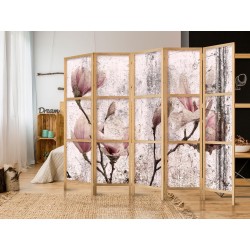 Japanischer Paravent "Japanischer Paravent - Vintage Magnolias II" Liegen Ihnen der japanische Stil und die japanische Kultur am Herzen? Aber nicht nahe genug, um dort zu leben oder diesen Teil der Welt zu besuchen? Sind Sie auf der Suche nach einer modernen Dekoration für Ihr Zuhause? Sehen Sie sich die japanischen Paravents an. Dieses vergessene dekorative Element ist sowohl zu Hause als auch im Büro sehr nützlich. Für wenig Geld können Sie Ihre Wohnung fast wie neu einrichten. Japanische Paravents fügen sich perfekt in jeden Einrichtungsstil ein. Ein Paravent "Japanischer Paravent - Vintage Magnolias II" ist nicht nur eine tolle Dekorationsidee, sondern auch eine praktische Möglichkeit, für Privatsphäre zu sorgen. Müssen Sie aus Ihrem Wohnzimmer zwei Räume machen? Ein japanischer Paravent ist in einem solchen Fall die ideale Lösung. Darüber hinaus unterstreicht das einseitig aufgedruckte Motiv mit Bezug zu Japan Ihr Interesse an der orientalischen Kultur. Wenn Sie in einer Einzimmerwohnung leben, ist japanischer Paravent eine gute Lösung, um die verschiedenen Bereiche voneinander zu trennen. Auf diese Weise schaffen Sie definierte Bereiche für das Esszimmer oder das Wohnzimmer oder sogar trennen Ihre Home-Office-Ecke ab und nutzen ein schönes Objekt, das viel Charme in Ihr Interieur bringt.