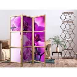 Japanischer Paravent "Japanischer Paravent - Violet Orchids I" Liegen Ihnen der japanische Stil und die japanische Kultur am Herzen? Aber nicht nahe genug, um dort zu leben oder diesen Teil der Welt zu besuchen? Sind Sie auf der Suche nach einer modernen Dekoration für Ihr Zuhause? Sehen Sie sich die japanischen Paravents an. Dieses vergessene dekorative Element ist sowohl zu Hause als auch im Büro sehr nützlich. Für wenig Geld können Sie Ihre Wohnung fast wie neu einrichten. Japanische Paravents fügen sich perfekt in jeden Einrichtungsstil ein. Ein Paravent "Japanischer Paravent - Violet Orchids I" ist nicht nur eine tolle Dekorationsidee, sondern auch eine praktische Möglichkeit, für Privatsphäre zu sorgen. Müssen Sie aus Ihrem Wohnzimmer zwei Räume machen? Ein japanischer Paravent ist in einem solchen Fall die ideale Lösung. Darüber hinaus unterstreicht das einseitig aufgedruckte Motiv mit Bezug zu Japan Ihr Interesse an der orientalischen Kultur. Wenn Sie in einer Einzimmerwohnung leben, ist japanischer Paravent eine gute Lösung, um die verschiedenen Bereiche voneinander zu trennen. Auf diese Weise schaffen Sie definierte Bereiche für das Esszimmer oder das Wohnzimmer oder sogar trennen Ihre Home-Office-Ecke ab und nutzen ein schönes Objekt, das viel Charme in Ihr Interieur bringt.