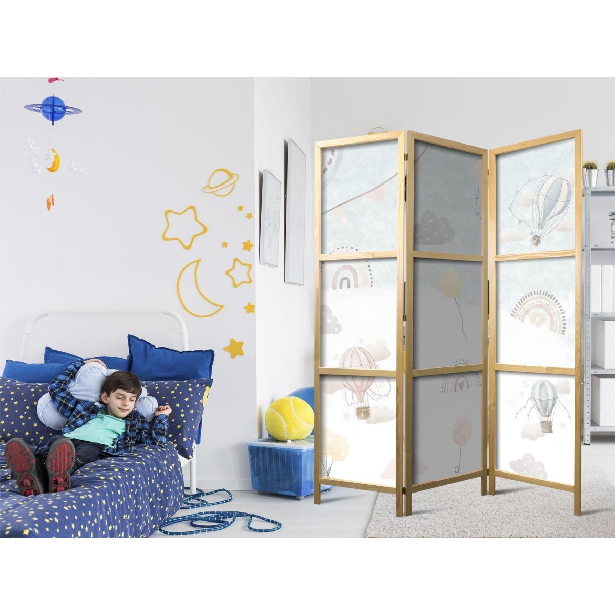 Asiatische Paravents Die asiatischen Paravents aus unserer Kollektion werden auf hochwertiges Vlies gedruckt. Dank des Materials hat sich der sichere Paravent auch im Zimmer eines jungen Orient-Liebhaber bewährt. Asiatische Paravents sind perfekt für ein Restaurant in diesem Stil. Sie können die Bereiche zwischen den Tischen abgrenzen, so dass sich die Gäste wohlfühlen. Japanisches Paravent "Japanischer Paravent - Balloons in the Sky - Balloons in Pastel Colors Flying Through a Cloudy Sky - Among Rainbows and Stars." ist auch eine gute Option für Schönheitssalons. Wenn Sie keine Wände bauen wollen, deren Layout Sie nach einer gewissen Zeit langweilen könnte, ist ein japanischer Paravent ideal für Sie! Es trennt die Kundenbereiche und verleiht ihnen Intimität.