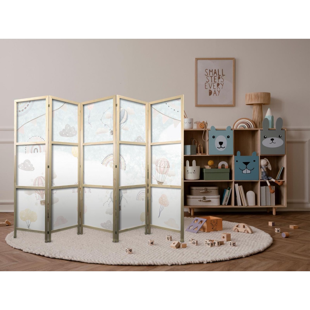 Asiatische Paravents Die asiatischen Paravents aus unserer Kollektion werden auf hochwertiges Vlies gedruckt. Dank des Materials hat sich der sichere Paravent auch im Zimmer eines jungen Orient-Liebhaber bewährt. Asiatische Paravents sind perfekt für ein Restaurant in diesem Stil. Sie können die Bereiche zwischen den Tischen abgrenzen, so dass sich die Gäste wohlfühlen. Japanisches Paravent "Japanischer Paravent - Balloons in the Sky - Balloons in pastel colors flying through a cloudy sky - among rainbows and stars." ist auch eine gute Option für Schönheitssalons. Wenn Sie keine Wände bauen wollen, deren Layout Sie nach einer gewissen Zeit langweilen könnte, ist ein japanischer Paravent ideal für Sie! Es trennt die Kundenbereiche und verleiht ihnen Intimität.