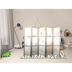 Japanischer Paravent "Japanischer Paravent - Fairy-Tale Galaxy - Moon phases in shades of yellow among stars in beige and ash colors with stardust." Liegen Ihnen der japanische Stil und die japanische Kultur am Herzen? Aber nicht nahe genug, um dort zu leben oder diesen Teil der Welt zu besuchen? Sind Sie auf der Suche nach einer modernen Dekoration für Ihr Zuhause? Sehen Sie sich die japanischen Paravents an. Dieses vergessene dekorative Element ist sowohl zu Hause als auch im Büro sehr nützlich. Für wenig Geld können Sie Ihre Wohnung fast wie neu einrichten. Japanische Paravents fügen sich perfekt in jeden Einrichtungsstil ein. Ein Paravent "Japanischer Paravent - Fairy-Tale Galaxy - Moon phases in shades of yellow among stars in beige and ash colors with stardust." ist nicht nur eine tolle Dekorationsidee, sondern auch eine praktische Möglichkeit, für Privatsphäre zu sorgen. Müssen Sie aus Ihrem Wohnzimmer zwei Räume machen? Ein japanischer Paravent ist in einem solchen Fall die ideale Lösung. Darüber hinaus unterstreicht das einseitig aufgedruckte Motiv mit Bezug zu Japan Ihr Interesse an der orientalischen Kultur. Wenn Sie in einer Einzimmerwohnung leben, ist japanischer Paravent eine gute Lösung, um die verschiedenen Bereiche voneinander zu trennen. Auf diese Weise schaffen Sie definierte Bereiche für das Esszimmer oder das Wohnzimmer oder sogar trennen Ihre Home-Office-Ecke ab und nutzen ein schönes Objekt, das viel Charme in Ihr Interieur bringt.
