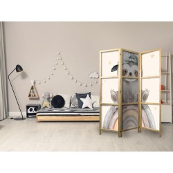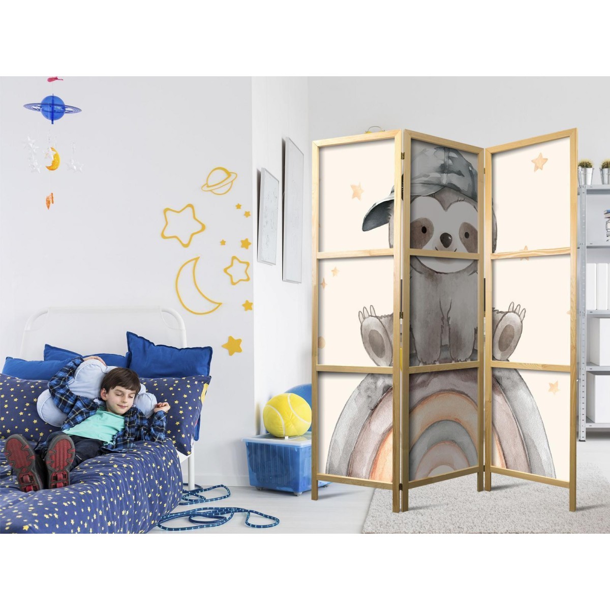 Japanischer Paravent "Japanischer Paravent - Happy Sloth - Sloth in muted colors - wearing a cap - sitting on a rainbow among the stars."Liegen Ihnen der japanische Stil und die japanische Kultur am Herzen? Aber nicht nahe genug, um...