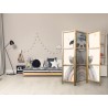 Japanischer Paravent "Japanischer Paravent - Happy Sloth - Sloth in muted colors - wearing a cap - sitting on a rainbow among the stars." Liegen Ihnen der japanische Stil und die japanische Kultur am Herzen? Aber nicht nahe genug, um dort zu leben oder diesen Teil der Welt zu besuchen? Sind Sie auf der Suche nach einer modernen Dekoration für Ihr Zuhause? Sehen Sie sich die japanischen Paravents an. Dieses vergessene dekorative Element ist sowohl zu Hause als auch im Büro sehr nützlich. Für wenig Geld können Sie Ihre Wohnung fast wie neu einrichten. Japanische Paravents fügen sich perfekt in jeden Einrichtungsstil ein. Ein Paravent "Japanischer Paravent - Happy Sloth - Sloth in muted colors - wearing a cap - sitting on a rainbow among the stars." ist nicht nur eine tolle Dekorationsidee, sondern auch eine praktische Möglichkeit, für Privatsphäre zu sorgen. Müssen Sie aus Ihrem Wohnzimmer zwei Räume machen? Ein japanischer Paravent ist in einem solchen Fall die ideale Lösung. Darüber hinaus unterstreicht das einseitig aufgedruckte Motiv mit Bezug zu Japan Ihr Interesse an der orientalischen Kultur. Wenn Sie in einer Einzimmerwohnung leben, ist japanischer Paravent eine gute Lösung, um die verschiedenen Bereiche voneinander zu trennen. Auf diese Weise schaffen Sie definierte Bereiche für das Esszimmer oder das Wohnzimmer oder sogar trennen Ihre Home-Office-Ecke ab und nutzen ein schönes Objekt, das viel Charme in Ihr Interieur bringt. Japanische Paravents Japanische Paravents Ein Büro oder Arbeitsplatz kann sehr gemütlich sein, obwohl er voller Menschen ist. Die Verwendung eines dekorativen Paravents vermittelt ein Gefühl von Intimität und schafft eine Zone der Ruhe. Privatsphäre ist auch am Arbeitsplatz wichtig, da manche Aufgaben viel Konzentration erfordern. Zu diesem Zweck ist es ratsam, ein japanisches Paravent zu verwenden. Damit heben Sie Ihren Schreibtisch von anderen ab. Mit ihrem orientalischen, originellen Design ersetzen die 3- oder 5-teiligen Paravents japanisch viele Standard-Wanddekorationen oder monochrome Trennwände. Wählen Sie einen Paravent japanisch, der einen massiven Holzrahmen hat. Dadurch wird der orientalische Stil stärker betont. Ein solcher Paravent passt gut zu modernen und Boho-Einrichtungen.