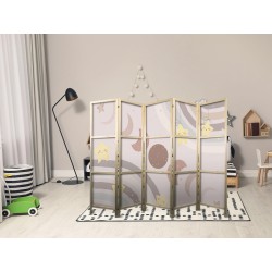 Japanischer Paravent "Japanischer Paravent - Joyful Sky - Yellow cheerful stars with a rainbow against the moon phases - in the sky colored light beige." Liegen Ihnen der japanische Stil und die japanische Kultur am Herzen? Aber nicht nahe genug, um dort zu leben oder diesen Teil der Welt zu besuchen? Sind Sie auf der Suche nach einer modernen Dekoration für Ihr Zuhause? Sehen Sie sich die japanischen Paravents an. Dieses vergessene dekorative Element ist sowohl zu Hause als auch im Büro sehr nützlich. Für wenig Geld können Sie Ihre Wohnung fast wie neu einrichten. Japanische Paravents fügen sich perfekt in jeden Einrichtungsstil ein. Ein Paravent "Japanischer Paravent - Joyful Sky - Yellow cheerful stars with a rainbow against the moon phases - in the sky colored light beige." ist nicht nur eine tolle Dekorationsidee, sondern auch eine praktische Möglichkeit, für Privatsphäre zu sorgen. Müssen Sie aus Ihrem Wohnzimmer zwei Räume machen? Ein japanischer Paravent ist in einem solchen Fall die ideale Lösung. Darüber hinaus unterstreicht das einseitig aufgedruckte Motiv mit Bezug zu Japan Ihr Interesse an der orientalischen Kultur. Wenn Sie in einer Einzimmerwohnung leben, ist japanischer Paravent eine gute Lösung, um die verschiedenen Bereiche voneinander zu trennen. Auf diese Weise schaffen Sie definierte Bereiche für das Esszimmer oder das Wohnzimmer oder sogar trennen Ihre Home-Office-Ecke ab und nutzen ein schönes Objekt, das viel Charme in Ihr Interieur bringt.