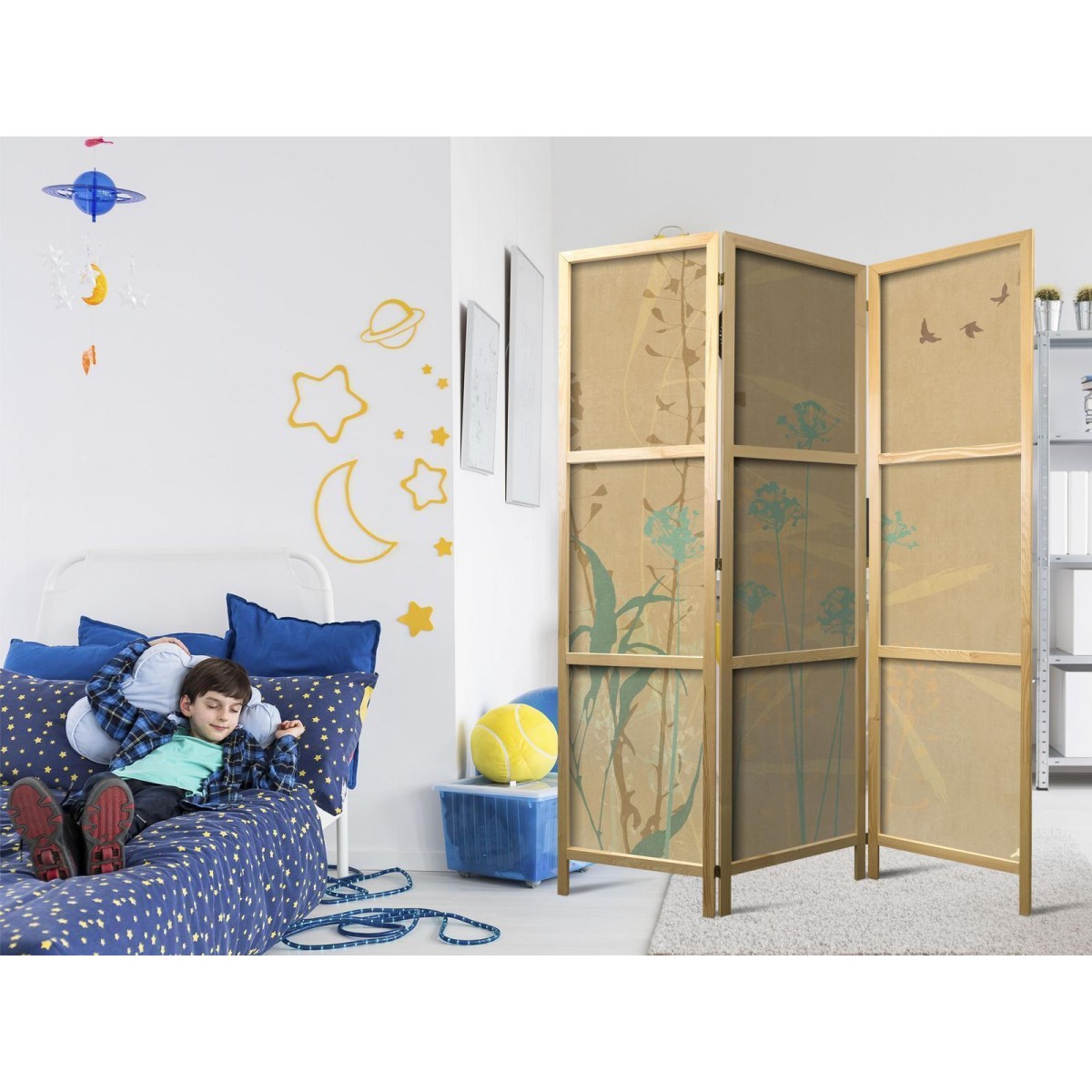 Japanischer Paravent "Japanischer Paravent - Tiny Bird - Colorful grasses in golden shades of sunset." Liegen Ihnen der japanische Stil und die japanische Kultur am Herzen? Aber nicht nahe genug, um dort zu leben oder diesen Teil der Welt zu besuchen? Sind Sie auf der Suche nach einer modernen Dekoration für Ihr Zuhause? Sehen Sie sich die japanischen Paravents an. Dieses vergessene dekorative Element ist sowohl zu Hause als auch im Büro sehr nützlich. Für wenig Geld können Sie Ihre Wohnung fast wie neu einrichten. Japanische Paravents fügen sich perfekt in jeden Einrichtungsstil ein. Ein Paravent "Japanischer Paravent - Tiny Bird - Colorful grasses in golden shades of sunset." ist nicht nur eine tolle Dekorationsidee, sondern auch eine praktische Möglichkeit, für Privatsphäre zu sorgen. Müssen Sie aus Ihrem Wohnzimmer zwei Räume machen? Ein japanischer Paravent ist in einem solchen Fall die ideale Lösung. Darüber hinaus unterstreicht das einseitig aufgedruckte Motiv mit Bezug zu Japan Ihr Interesse an der orientalischen Kultur. Wenn Sie in einer Einzimmerwohnung leben, ist japanischer Paravent eine gute Lösung, um die verschiedenen Bereiche voneinander zu trennen. Auf diese Weise schaffen Sie definierte Bereiche für das Esszimmer oder das Wohnzimmer oder sogar trennen Ihre Home-Office-Ecke ab und nutzen ein schönes Objekt, das viel Charme in Ihr Interieur bringt. Japanische Paravents Japanische Paravents Ein Büro oder Arbeitsplatz kann sehr gemütlich sein, obwohl er voller Menschen ist. Die Verwendung eines dekorativen Paravents vermittelt ein Gefühl von Intimität und schafft eine Zone der Ruhe. Privatsphäre ist auch am Arbeitsplatz wichtig, da manche Aufgaben viel Konzentration erfordern. Zu diesem Zweck ist es ratsam, ein japanisches Paravent zu verwenden. Damit heben Sie Ihren Schreibtisch von anderen ab. Mit ihrem orientalischen, originellen Design ersetzen die 3- oder 5-teiligen Paravents japanisch viele Standard-Wanddekorationen oder monochrome Trennwände. Wählen Sie einen Paravent japanisch, der einen massiven Holzrahmen hat. Dadurch wird der orientalische Stil stärker betont. Ein solcher Paravent passt gut zu modernen und Boho-Einrichtungen.