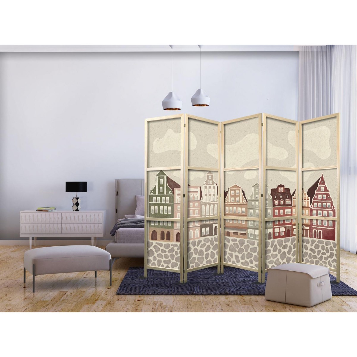Asiatische Paravents Die asiatischen Paravents aus unserer Kollektion werden auf hochwertiges Vlies gedruckt. Dank des Materials hat sich der sichere Paravent auch im Zimmer eines jungen Orient-Liebhaber bewährt. Asiatische Paravents sind perfekt für ein Restaurant in diesem Stil. Sie können die Bereiche zwischen den Tischen abgrenzen, so dass sich die Gäste wohlfühlen. Japanisches Paravent "Japanischer Paravent - Solny Square - Colorfully Illustrated Townhouses Against a Sky with Clouds." ist auch eine gute Option für Schönheitssalons. Wenn Sie keine Wände bauen wollen, deren Layout Sie nach einer gewissen Zeit langweilen könnte, ist ein japanischer Paravent ideal für Sie! Es trennt die Kundenbereiche und verleiht ihnen Intimität.