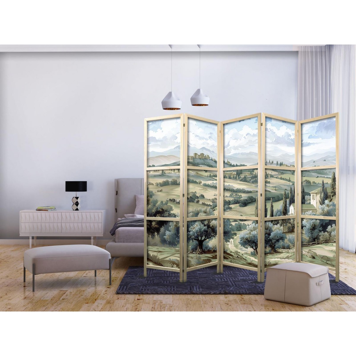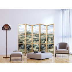Japanischer Paravent "Japanischer Paravent - Landscape with Green Fields and Trees - Tuscan sunny view." Liegen Ihnen der japanische Stil und die japanische Kultur am Herzen? Aber nicht nahe genug, um dort zu leben oder diesen Teil der Welt zu besuchen? Sind Sie auf der Suche nach einer modernen Dekoration für Ihr Zuhause? Sehen Sie sich die japanischen Paravents an. Dieses vergessene dekorative Element ist sowohl zu Hause als auch im Büro sehr nützlich. Für wenig Geld können Sie Ihre Wohnung fast wie neu einrichten. Japanische Paravents fügen sich perfekt in jeden Einrichtungsstil ein. Ein Paravent "Japanischer Paravent - Landscape with Green Fields and Trees - Tuscan sunny view." ist nicht nur eine tolle Dekorationsidee, sondern auch eine praktische Möglichkeit, für Privatsphäre zu sorgen. Müssen Sie aus Ihrem Wohnzimmer zwei Räume machen? Ein japanischer Paravent ist in einem solchen Fall die ideale Lösung. Darüber hinaus unterstreicht das einseitig aufgedruckte Motiv mit Bezug zu Japan Ihr Interesse an der orientalischen Kultur. Wenn Sie in einer Einzimmerwohnung leben, ist japanischer Paravent eine gute Lösung, um die verschiedenen Bereiche voneinander zu trennen. Auf diese Weise schaffen Sie definierte Bereiche für das Esszimmer oder das Wohnzimmer oder sogar trennen Ihre Home-Office-Ecke ab und nutzen ein schönes Objekt, das viel Charme in Ihr Interieur bringt.