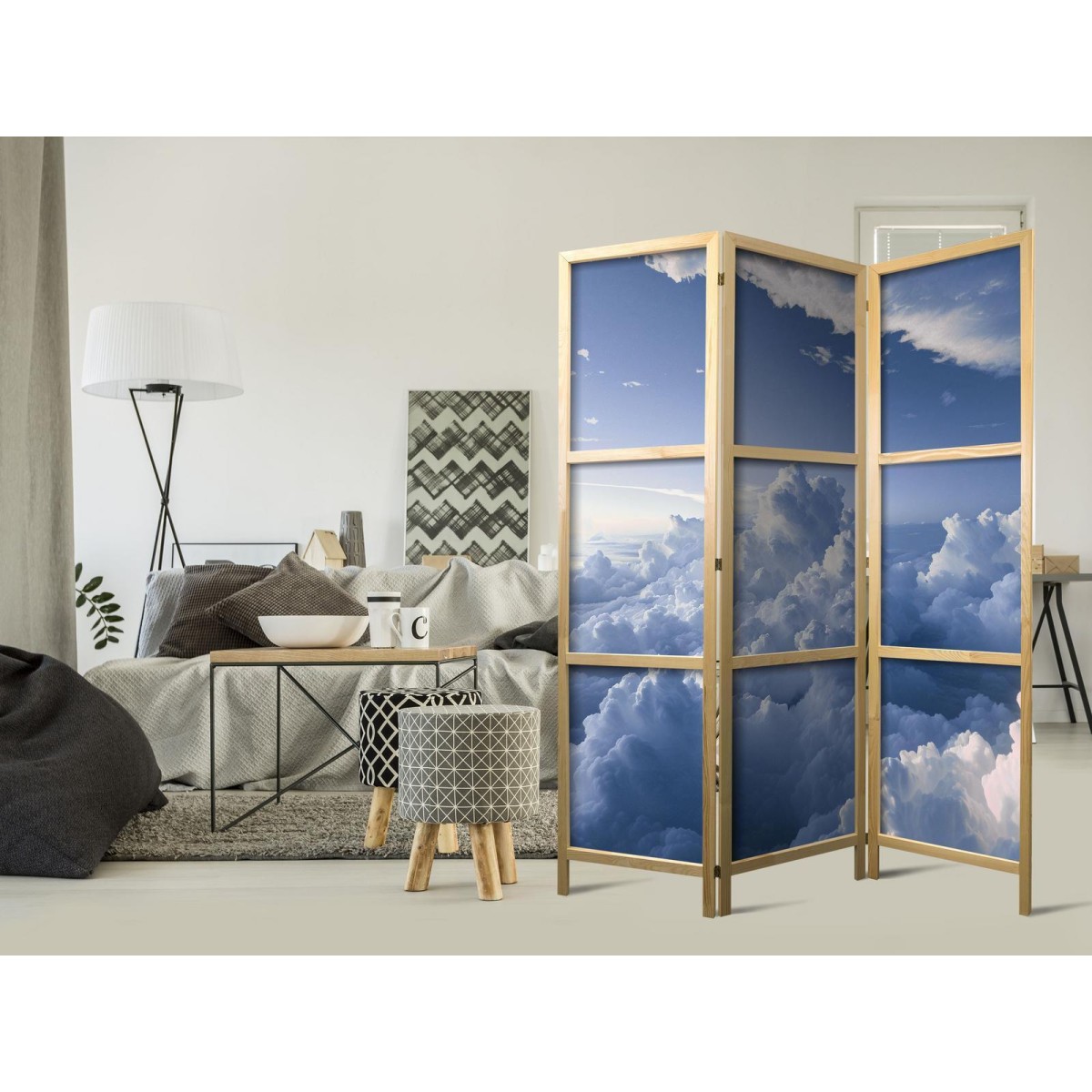 Japanischer Paravent "Japanischer Paravent - Aerial Landscapes: Rays Illuminating Fluffy Cloud Formations" Liegen Ihnen der japanische Stil und die japanische Kultur am Herzen? Aber nicht nahe genug, um dort zu leben oder diesen Teil der Welt zu besuchen? Sind Sie auf der Suche nach einer modernen Dekoration für Ihr Zuhause? Sehen Sie sich die japanischen Paravents an. Dieses vergessene dekorative Element ist sowohl zu Hause als auch im Büro sehr nützlich. Für wenig Geld können Sie Ihre Wohnung fast wie neu einrichten. Japanische Paravents fügen sich perfekt in jeden Einrichtungsstil ein. Ein Paravent "Japanischer Paravent - Aerial Landscapes: Rays Illuminating Fluffy Cloud Formations" ist nicht nur eine tolle Dekorationsidee, sondern auch eine praktische Möglichkeit, für Privatsphäre zu sorgen. Müssen Sie aus Ihrem Wohnzimmer zwei Räume machen? Ein japanischer Paravent ist in einem solchen Fall die ideale Lösung. Darüber hinaus unterstreicht das einseitig aufgedruckte Motiv mit Bezug zu Japan Ihr Interesse an der orientalischen Kultur. Wenn Sie in einer Einzimmerwohnung leben, ist japanischer Paravent eine gute Lösung, um die verschiedenen Bereiche voneinander zu trennen. Auf diese Weise schaffen Sie definierte Bereiche für das Esszimmer oder das Wohnzimmer oder sogar trennen Ihre Home-Office-Ecke ab und nutzen ein schönes Objekt, das viel Charme in Ihr Interieur bringt.