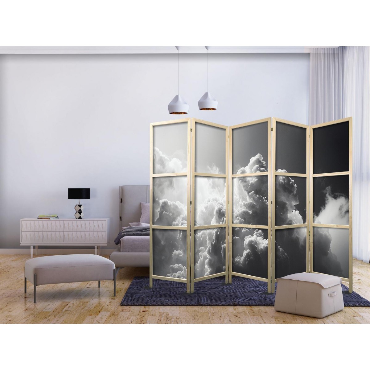 Japanischer Paravent "Japanischer Paravent - Extraordinary Phenomenon: The Sun Illuminating Dark Clouds." Liegen Ihnen der japanische Stil und die japanische Kultur am Herzen? Aber nicht nahe genug, um dort zu leben oder diesen Teil der Welt zu besuchen? Sind Sie auf der Suche nach einer modernen Dekoration für Ihr Zuhause? Sehen Sie sich die japanischen Paravents an. Dieses vergessene dekorative Element ist sowohl zu Hause als auch im Büro sehr nützlich. Für wenig Geld können Sie Ihre Wohnung fast wie neu einrichten. Japanische Paravents fügen sich perfekt in jeden Einrichtungsstil ein. Ein Paravent "Japanischer Paravent - Extraordinary Phenomenon: The Sun Illuminating Dark Clouds." ist nicht nur eine tolle Dekorationsidee, sondern auch eine praktische Möglichkeit, für Privatsphäre zu sorgen. Müssen Sie aus Ihrem Wohnzimmer zwei Räume machen? Ein japanischer Paravent ist in einem solchen Fall die ideale Lösung. Darüber hinaus unterstreicht das einseitig aufgedruckte Motiv mit Bezug zu Japan Ihr Interesse an der orientalischen Kultur. Wenn Sie in einer Einzimmerwohnung leben, ist japanischer Paravent eine gute Lösung, um die verschiedenen Bereiche voneinander zu trennen. Auf diese Weise schaffen Sie definierte Bereiche für das Esszimmer oder das Wohnzimmer oder sogar trennen Ihre Home-Office-Ecke ab und nutzen ein schönes Objekt, das viel Charme in Ihr Interieur bringt.