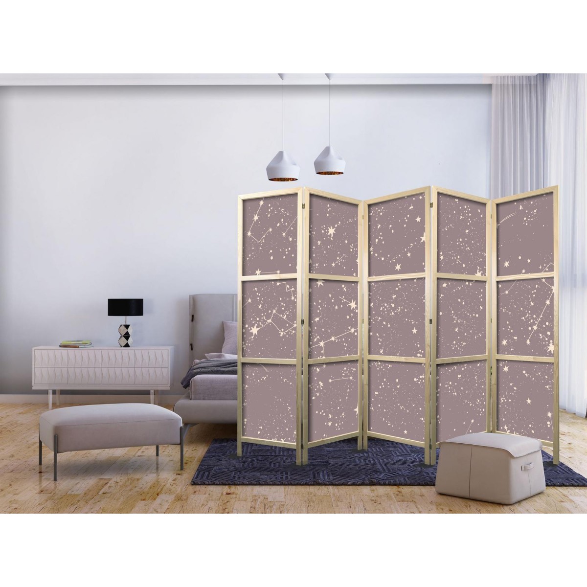 Asiatische Paravents Die asiatischen Paravents aus unserer Kollektion werden auf hochwertiges Vlies gedruckt. Dank des Materials hat sich der sichere Paravent auch im Zimmer eines jungen Orient-Liebhaber bewährt. Asiatische Paravents sind perfekt für ein Restaurant in diesem Stil. Sie können die Bereiche zwischen den Tischen abgrenzen, so dass sich die Gäste wohlfühlen. Japanisches Paravent "Japanischer Paravent - Night Sky - Artistic Constellations and Stars in Pastel Shades" ist auch eine gute Option für Schönheitssalons. Wenn Sie keine Wände bauen wollen, deren Layout Sie nach einer gewissen Zeit langweilen könnte, ist ein japanischer Paravent ideal für Sie! Es trennt die Kundenbereiche und verleiht ihnen Intimität.