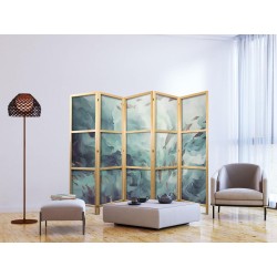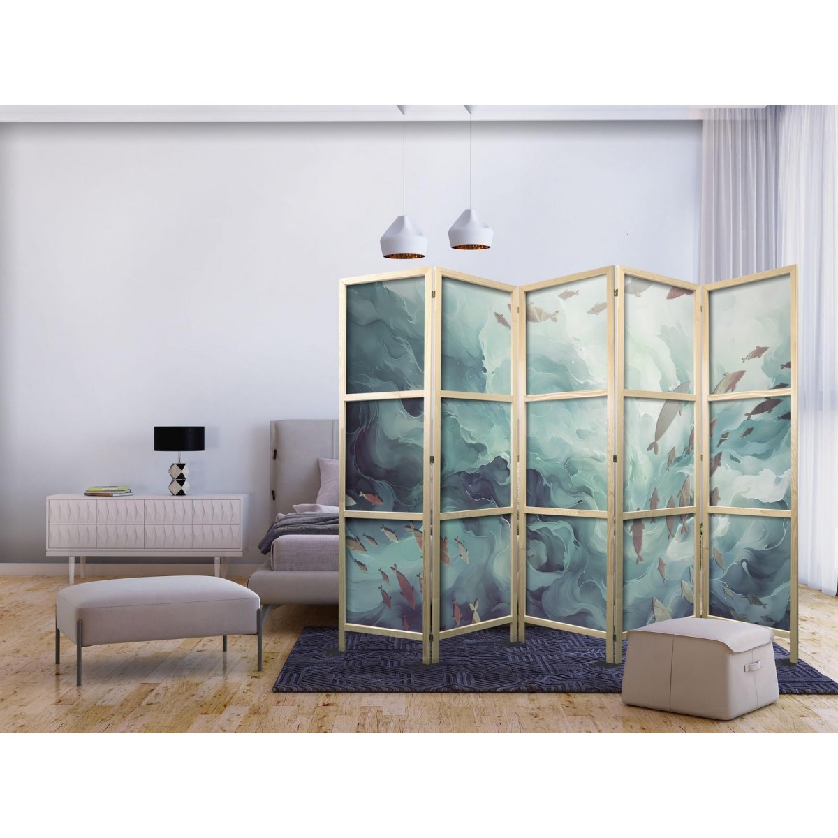 Japanischer Paravent "Japanischer Paravent - Escaping Fish - Very Fast Swimming Fish in Muted Colors Among Ocean Depths" Liegen Ihnen der japanische Stil und die japanische Kultur am Herzen? Aber nicht nahe genug, um dort zu leben oder diesen Teil der Welt zu besuchen? Sind Sie auf der Suche nach einer modernen Dekoration für Ihr Zuhause? Sehen Sie sich die japanischen Paravents an. Dieses vergessene dekorative Element ist sowohl zu Hause als auch im Büro sehr nützlich. Für wenig Geld können Sie Ihre Wohnung fast wie neu einrichten. Japanische Paravents fügen sich perfekt in jeden Einrichtungsstil ein. Ein Paravent "Japanischer Paravent - Escaping Fish - Very Fast Swimming Fish in Muted Colors Among Ocean Depths" ist nicht nur eine tolle Dekorationsidee, sondern auch eine praktische Möglichkeit, für Privatsphäre zu sorgen. Müssen Sie aus Ihrem Wohnzimmer zwei Räume machen? Ein japanischer Paravent ist in einem solchen Fall die ideale Lösung. Darüber hinaus unterstreicht das einseitig aufgedruckte Motiv mit Bezug zu Japan Ihr Interesse an der orientalischen Kultur. Wenn Sie in einer Einzimmerwohnung leben, ist japanischer Paravent eine gute Lösung, um die verschiedenen Bereiche voneinander zu trennen. Auf diese Weise schaffen Sie definierte Bereiche für das Esszimmer oder das Wohnzimmer oder sogar trennen Ihre Home-Office-Ecke ab und nutzen ein schönes Objekt, das viel Charme in Ihr Interieur bringt.