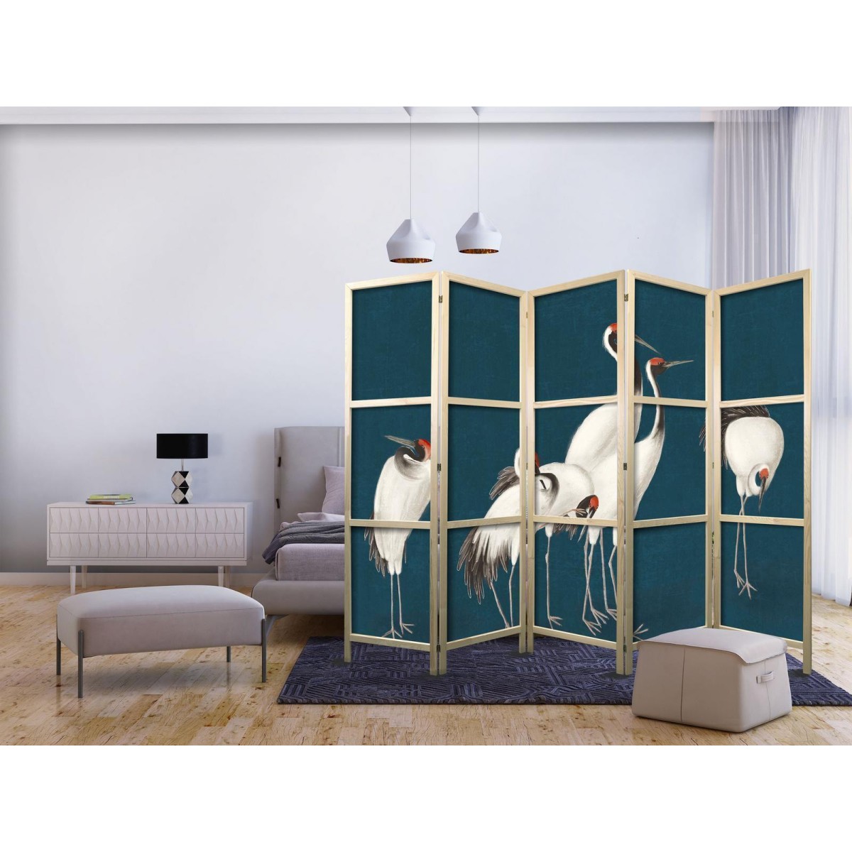 Asiatische Paravents Die asiatischen Paravents aus unserer Kollektion werden auf hochwertiges Vlies gedruckt. Dank des Materials hat sich der sichere Paravent auch im Zimmer eines jungen Orient-Liebhaber bewährt. Asiatische Paravents sind perfekt für ein Restaurant in diesem Stil. Sie können die Bereiche zwischen den Tischen abgrenzen, so dass sich die Gäste wohlfühlen. Japanisches Paravent "Japanischer Paravent - Evening by the pond - a group of cranes drawn with dry pastels on a dark turquoise background" ist auch eine gute Option für Schönheitssalons. Wenn Sie keine Wände bauen wollen, deren Layout Sie nach einer gewissen Zeit langweilen könnte, ist ein japanischer Paravent ideal für Sie! Es trennt die Kundenbereiche und verleiht ihnen Intimität.