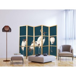 Japanischer Paravent "Japanischer Paravent - Evening by the pond - a group of cranes drawn with dry pastels on a dark turquoise background" Liegen Ihnen der japanische Stil und die japanische Kultur am Herzen? Aber nicht nahe genug, um dort zu leben oder diesen Teil der Welt zu besuchen? Sind Sie auf der Suche nach einer modernen Dekoration für Ihr Zuhause? Sehen Sie sich die japanischen Paravents an. Dieses vergessene dekorative Element ist sowohl zu Hause als auch im Büro sehr nützlich. Für wenig Geld können Sie Ihre Wohnung fast wie neu einrichten. Japanische Paravents fügen sich perfekt in jeden Einrichtungsstil ein. Ein Paravent "Japanischer Paravent - Evening by the pond - a group of cranes drawn with dry pastels on a dark turquoise background" ist nicht nur eine tolle Dekorationsidee, sondern auch eine praktische Möglichkeit, für Privatsphäre zu sorgen. Müssen Sie aus Ihrem Wohnzimmer zwei Räume machen? Ein japanischer Paravent ist in einem solchen Fall die ideale Lösung. Darüber hinaus unterstreicht das einseitig aufgedruckte Motiv mit Bezug zu Japan Ihr Interesse an der orientalischen Kultur. Wenn Sie in einer Einzimmerwohnung leben, ist japanischer Paravent eine gute Lösung, um die verschiedenen Bereiche voneinander zu trennen. Auf diese Weise schaffen Sie definierte Bereiche für das Esszimmer oder das Wohnzimmer oder sogar trennen Ihre Home-Office-Ecke ab und nutzen ein schönes Objekt, das viel Charme in Ihr Interieur bringt.