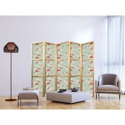 Japanischer Paravent "Japanischer Paravent - Fish and Japanese Pattern - Koi Fish in Orange-Cream Colors on a Green-Mint Background with an Oriental Pattern" Liegen Ihnen der japanische Stil und die japanische Kultur am Herzen? Aber nicht nahe genug, um dort zu leben oder diesen Teil der Welt zu besuchen? Sind Sie auf der Suche nach einer modernen Dekoration für Ihr Zuhause? Sehen Sie sich die japanischen Paravents an. Dieses vergessene dekorative Element ist sowohl zu Hause als auch im Büro sehr nützlich. Für wenig Geld können Sie Ihre Wohnung fast wie neu einrichten. Japanische Paravents fügen sich perfekt in jeden Einrichtungsstil ein. Ein Paravent "Japanischer Paravent - Fish and Japanese Pattern - Koi Fish in Orange-Cream Colors on a Green-Mint Background with an Oriental Pattern" ist nicht nur eine tolle Dekorationsidee, sondern auch eine praktische Möglichkeit, für Privatsphäre zu sorgen. Müssen Sie aus Ihrem Wohnzimmer zwei Räume machen? Ein japanischer Paravent ist in einem solchen Fall die ideale Lösung. Darüber hinaus unterstreicht das einseitig aufgedruckte Motiv mit Bezug zu Japan Ihr Interesse an der orientalischen Kultur. Wenn Sie in einer Einzimmerwohnung leben, ist japanischer Paravent eine gute Lösung, um die verschiedenen Bereiche voneinander zu trennen. Auf diese Weise schaffen Sie definierte Bereiche für das Esszimmer oder das Wohnzimmer oder sogar trennen Ihre Home-Office-Ecke ab und nutzen ein schönes Objekt, das viel Charme in Ihr Interieur bringt. Japanische Paravents Japanische Paravents Ein Büro oder Arbeitsplatz kann sehr gemütlich sein, obwohl er voller Menschen ist. Die Verwendung eines dekorativen Paravents vermittelt ein Gefühl von Intimität und schafft eine Zone der Ruhe. Privatsphäre ist auch am Arbeitsplatz wichtig, da manche Aufgaben viel Konzentration erfordern. Zu diesem Zweck ist es ratsam, ein japanisches Paravent zu verwenden. Damit heben Sie Ihren Schreibtisch von anderen ab. Mit ihrem orientalischen, originellen Design ersetzen die 3- oder 5-teiligen Paravents japanisch viele Standard-Wanddekorationen oder monochrome Trennwände. Wählen Sie einen Paravent japanisch, der einen massiven Holzrahmen hat. Dadurch wird der orientalische Stil stärker betont. Ein solcher Paravent passt gut zu modernen und Boho-Einrichtungen.