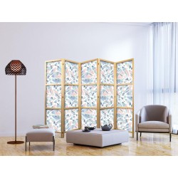 Japanischer Paravent "Japanischer Paravent - Fish in Minimalist Style - Fishes in Aztec Style in Pastel Color Tones on a White Background" Liegen Ihnen der japanische Stil und die japanische Kultur am Herzen? Aber nicht nahe genug, um dort zu leben oder diesen Teil der Welt zu besuchen? Sind Sie auf der Suche nach einer modernen Dekoration für Ihr Zuhause? Sehen Sie sich die japanischen Paravents an. Dieses vergessene dekorative Element ist sowohl zu Hause als auch im Büro sehr nützlich. Für wenig Geld können Sie Ihre Wohnung fast wie neu einrichten. Japanische Paravents fügen sich perfekt in jeden Einrichtungsstil ein. Ein Paravent "Japanischer Paravent - Fish in Minimalist Style - Fishes in Aztec Style in Pastel Color Tones on a White Background" ist nicht nur eine tolle Dekorationsidee, sondern auch eine praktische Möglichkeit, für Privatsphäre zu sorgen. Müssen Sie aus Ihrem Wohnzimmer zwei Räume machen? Ein japanischer Paravent ist in einem solchen Fall die ideale Lösung. Darüber hinaus unterstreicht das einseitig aufgedruckte Motiv mit Bezug zu Japan Ihr Interesse an der orientalischen Kultur. Wenn Sie in einer Einzimmerwohnung leben, ist japanischer Paravent eine gute Lösung, um die verschiedenen Bereiche voneinander zu trennen. Auf diese Weise schaffen Sie definierte Bereiche für das Esszimmer oder das Wohnzimmer oder sogar trennen Ihre Home-Office-Ecke ab und nutzen ein schönes Objekt, das viel Charme in Ihr Interieur bringt.
