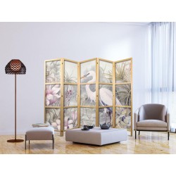 Japanische Paravents Asiatische Paravents Die asiatischen Paravents aus unserer Kollektion werden auf hochwertiges Vlies gedruckt. Dank des Materials hat sich der sichere Paravent auch im Zimmer eines jungen Orient-Liebhaber bewährt. Asiatische Paravents sind perfekt für ein Restaurant in diesem Stil. Sie können die Bereiche zwischen den Tischen abgrenzen, so dass sich die Gäste wohlfühlen. Japanisches Paravent "Japanischer Paravent - Heron wading in a pond – illustration in bright colours" ist auch eine gute Option für Schönheitssalons. Wenn Sie keine Wände bauen wollen, deren Layout Sie nach einer gewissen Zeit langweilen könnte, ist ein japanischer Paravent ideal für Sie! Es trennt die Kundenbereiche und verleiht ihnen Intimität.