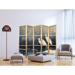 Japanischer Paravent - Herons over a winter pond - Japanese-style illustration in dark colours