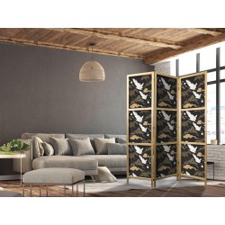 Japanischer Paravent "Japanischer Paravent - Oriental impressions - decorative pattern with a motif of flying cranes on a dark background" Liegen Ihnen der japanische Stil und die japanische Kultur am Herzen? Aber nicht nahe genug, um dort zu leben oder diesen Teil der Welt zu besuchen? Sind Sie auf der Suche nach einer modernen Dekoration für Ihr Zuhause? Sehen Sie sich die japanischen Paravents an. Dieses vergessene dekorative Element ist sowohl zu Hause als auch im Büro sehr nützlich. Für wenig Geld können Sie Ihre Wohnung fast wie neu einrichten. Japanische Paravents fügen sich perfekt in jeden Einrichtungsstil ein. Ein Paravent "Japanischer Paravent - Oriental impressions - decorative pattern with a motif of flying cranes on a dark background" ist nicht nur eine tolle Dekorationsidee, sondern auch eine praktische Möglichkeit, für Privatsphäre zu sorgen. Müssen Sie aus Ihrem Wohnzimmer zwei Räume machen? Ein japanischer Paravent ist in einem solchen Fall die ideale Lösung. Darüber hinaus unterstreicht das einseitig aufgedruckte Motiv mit Bezug zu Japan Ihr Interesse an der orientalischen Kultur. Wenn Sie in einer Einzimmerwohnung leben, ist japanischer Paravent eine gute Lösung, um die verschiedenen Bereiche voneinander zu trennen. Auf diese Weise schaffen Sie definierte Bereiche für das Esszimmer oder das Wohnzimmer oder sogar trennen Ihre Home-Office-Ecke ab und nutzen ein schönes Objekt, das viel Charme in Ihr Interieur bringt.