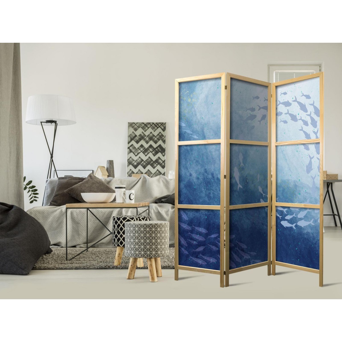 Asiatische Paravents Die asiatischen Paravents aus unserer Kollektion werden auf hochwertiges Vlies gedruckt. Dank des Materials hat sich der sichere Paravent auch im Zimmer eines jungen Orient-Liebhaber bewährt. Asiatische Paravents sind perfekt für ein Restaurant in diesem Stil. Sie können die Bereiche zwischen den Tischen abgrenzen, so dass sich die Gäste wohlfühlen. Japanisches Paravent "Japanischer Paravent - Schools of Fish - Luminous Clusters of Fish in Blue Among Ocean Depths" ist auch eine gute Option für Schönheitssalons. Wenn Sie keine Wände bauen wollen, deren Layout Sie nach einer gewissen Zeit langweilen könnte, ist ein japanischer Paravent ideal für Sie! Es trennt die Kundenbereiche und verleiht ihnen Intimität.