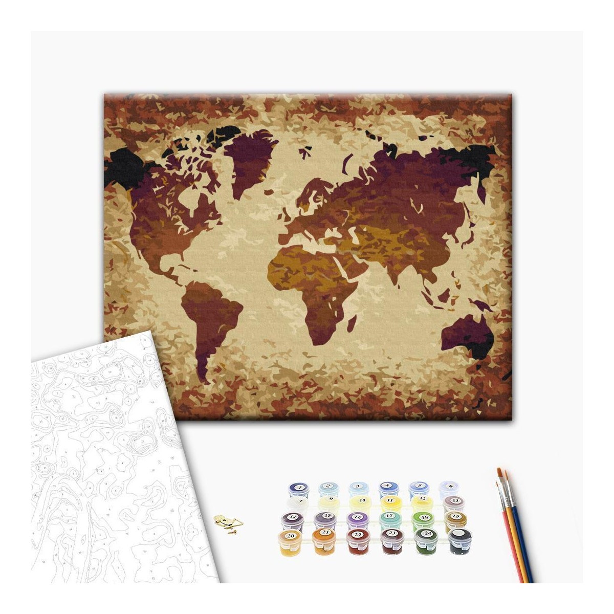 Suchst Du nach einer Möglichkeit, dich kreativ zu entspannen? Hast Du Lust auf ein einzigartiges Abenteuer, zu dem du auch deine Liebsten einladen kannst? Und gleichzeitig deine Kreativität erwecken und sich wie ein echter Künstler fühlen? Nichts einfacher! Entdecke unser neuestes Hit für Hobbyzeit - Malen nach Zahlen. Ein buntes Muster zum Bemalen "Malen nach Zahlen - World Map (Brown Colours)" Malen nach Zahlen ist eine ungewöhnliche Idee für die Freizeitgestaltung. Malen nach Zahlen "Malen nach Zahlen - World Map (Brown Colours)" ist eine Aktivität für Menschen in jedem Alter. Perfekt für Hobby-Maler und perfekte Wanddekoration.