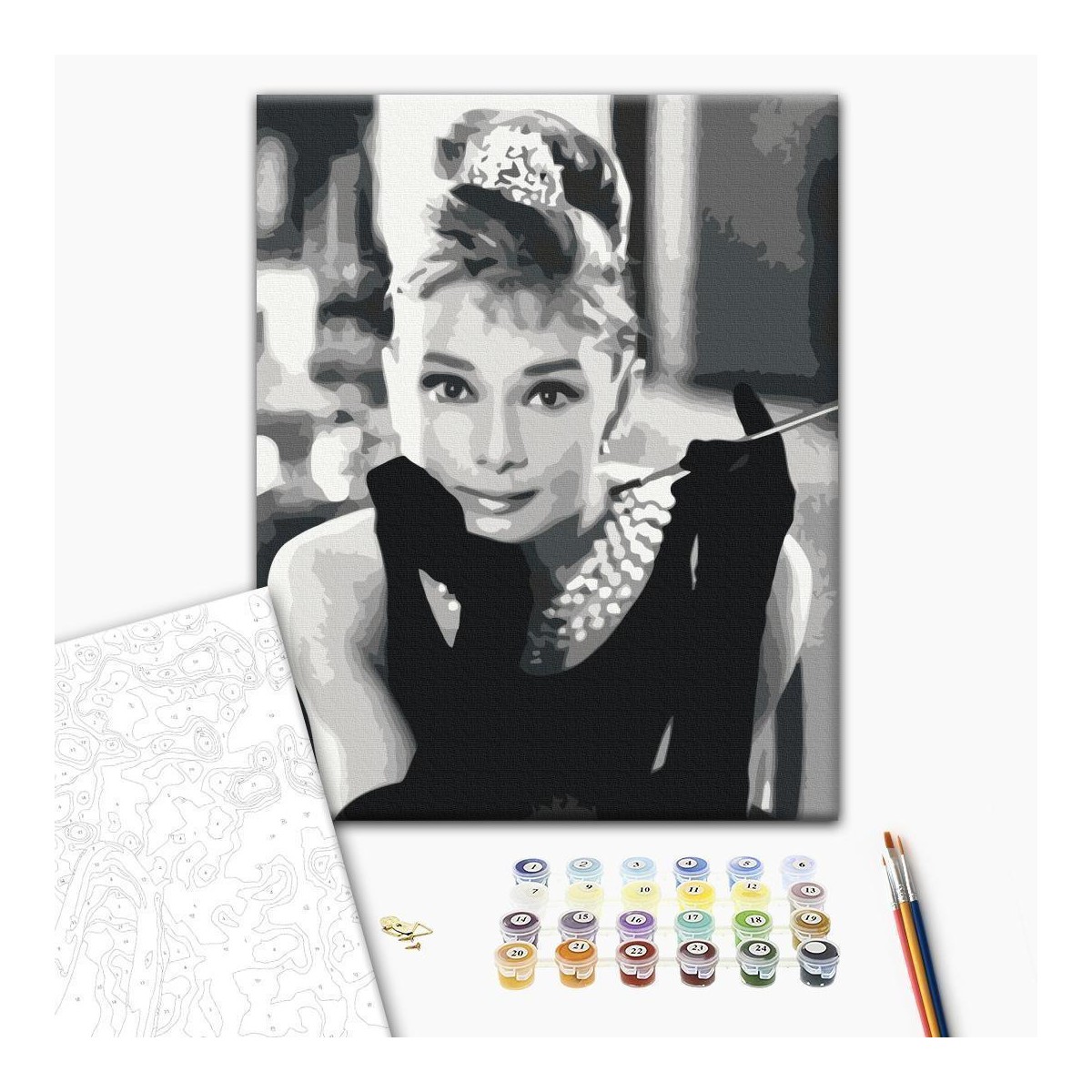 Hochwertige Vliesleinwand auf Holzspannrahmen (100% Fichte) aufgespannt, profesionelle Malpinsel und qualitative Acrylfarben in Einzeltöpfchen. Dein Bild wird zu echtem Kunstwerk.