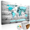 Pinnwand Bild "Korkbild - Blue Continents" ist ein Produkt für Personen die originelle Schmuckstücke für die Wand suchen. Ökologisches Material und interessantes Muster "Korkbild - Blue Continents" verursachen, dass die einfache Korktafel sich in ein stilvolles Accessoire verändert. Zu den Bildern auf Korken kann man Reißzwecken anheften und die besuchten Orte auf der Landkarte markieren oder Notizen anheften. Das Bild "Korkbild - Blue Continents" auf Kork ist viel leichter als die traditionellen Wanddekorationen. Dank dem können die dekorativen Korktafeln an jedem Platz in Deiner Wohnung oder Büro gehängt werden. Die Leinwand mit dem Ausdruck wird auf die Korktafel angebracht. Dank dem, charakterisiert sich der Aufdruck mit deutlichen Farben und gibt kleinste Details wieder. Stecke die Reißzwecken oder Notizen an und kreire Dein individuelles Muster auf Deiner Wand! Die Korklandkarte ist eine exzellente Idee als Geschenk für Reiseliebhaber!