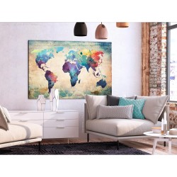 Pinnwand Bild "Korkbild - Colorful World Map" ist ein Produkt für Personen die originelle Schmuckstücke für die Wand suchen. Ökologisches Material und interessantes Muster "Korkbild - Colorful World Map" verursachen, dass die einfache Korktafel sich in ein stilvolles Accessoire verändert. Zu den Bildern auf Korken kann man Reißzwecken anheften und die besuchten Orte auf der Landkarte markieren oder Notizen anheften. Das Bild "Korkbild - Colorful World Map" auf Kork ist viel leichter als die traditionellen Wanddekorationen. Dank dem können die dekorativen Korktafeln an jedem Platz in Deiner Wohnung oder Büro gehängt werden. Die Leinwand mit dem Ausdruck wird auf die Korktafel angebracht. Dank dem, charakterisiert sich der Aufdruck mit deutlichen Farben und gibt kleinste Details wieder. Stecke die Reißzwecken oder Notizen an und kreire Dein individuelles Muster auf Deiner Wand! Die Korklandkarte ist eine exzellente Idee als Geschenk für Reiseliebhaber!