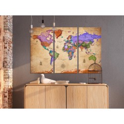 Pinnwand Bild "Korkbild - Colourful Travels (3 Parts)" ist ein Produkt für Personen die originelle Schmuckstücke für die Wand suchen. Ökologisches Material und interessantes Muster "Korkbild - Colourful Travels (3 Parts)" verursachen, dass die einfache Korktafel sich in ein stilvolles Accessoire verändert. Zu den Bildern auf Korken kann man Reißzwecken anheften und die besuchten Orte auf der Landkarte markieren oder Notizen anheften. Das Bild "Korkbild - Colourful Travels (3 Parts)" auf Kork ist viel leichter als die traditionellen Wanddekorationen. Dank dem können die dekorativen Korktafeln an jedem Platz in Deiner Wohnung oder Büro gehängt werden. Die Leinwand mit dem Ausdruck wird auf die Korktafel angebracht. Dank dem, charakterisiert sich der Aufdruck mit deutlichen Farben und gibt kleinste Details wieder. Stecke die Reißzwecken oder Notizen an und kreire Dein individuelles Muster auf Deiner Wand! Die Korklandkarte ist eine exzellente Idee als Geschenk für Reiseliebhaber!